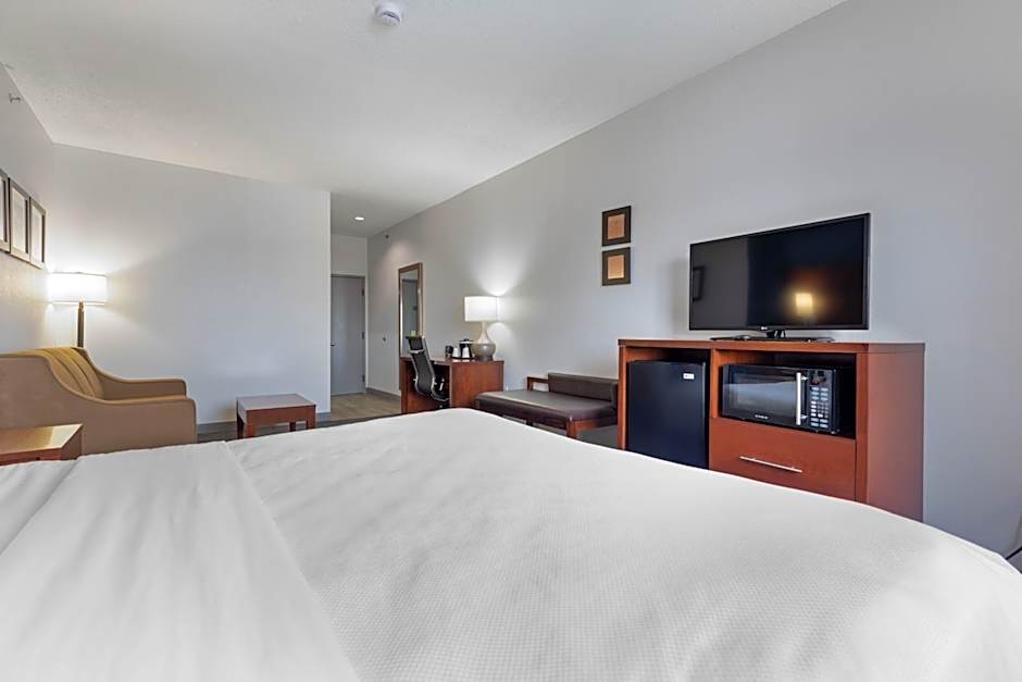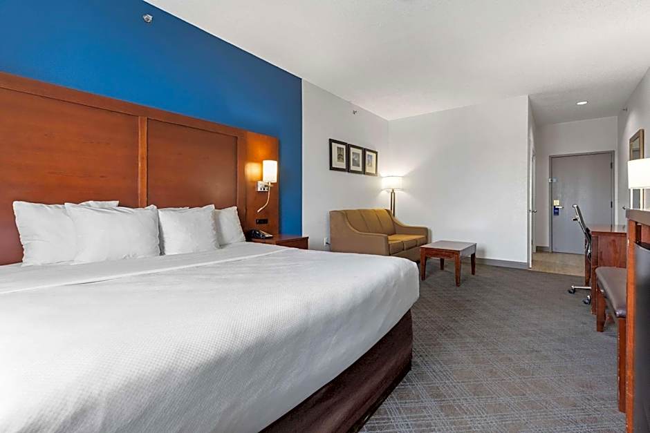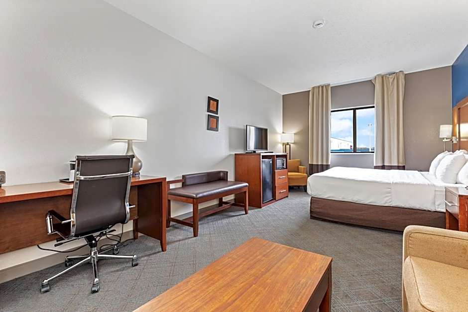 This spacious suite features a microwave, refrigerator, coffee maker, iron and ironing board, flat screen-high definition cable television with HBO, and free Wifi. Also included is a work desk with ergonomic chair, coffee table, and sofa-sleeper pullout!